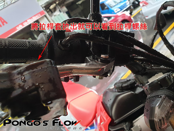 首先將拉桿橡膠護套拔除,就可以看到煞車拉桿的螺絲。